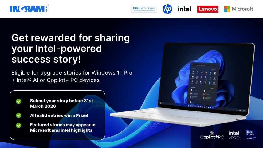 Partner with Ingram Micro for the complete Windows 11 Pro advanced solution, with options for all business types: Windows 11 Pro PCs, AI PCs and Copilot + PCs from Dell, HP and Lenovo; Microsoft Cloud stack for Modern Work to elevate your everyday compute experience.